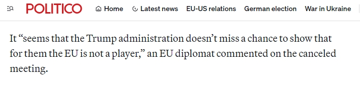 对于卡拉斯在好意思国吃了“闭门羹”,欧洲方面似乎并不感到就怕。有欧盟支吾官这么批驳:“特朗普政府似乎不放过任何一个契机,来阐述欧盟对他们而言没那么伏击。”