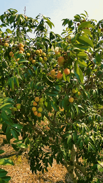挂绿的果肉细嫩正直、清甜清香,果实扁圆,口感不仅仅桂甜,还富含清香。果实熟习时红紫相间,一条绿线直贯到底,“挂绿”之名便由此而得。